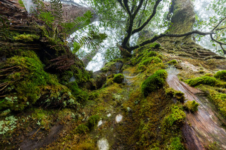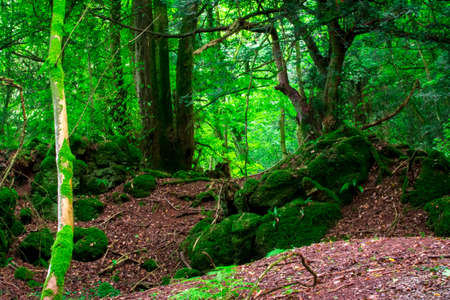 A mesmerizing green forest full of different kinds of unique plants in Yakushima, Japan
