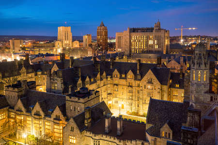 BRISTOL, UK - CIRCA SEPTEMBER 2016: The Wills Memorial Building part of the University of Bristol at the top of Park Street in black and white