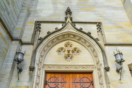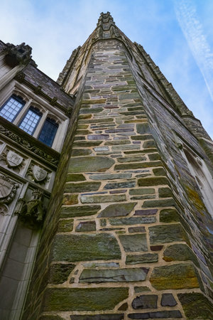 PRINCETON, NJ USA - NOVENBER 12, 2019: Elements of architectural design and view of the exterior of the Chapel on the campus of Princeton University in Princeton, NJ