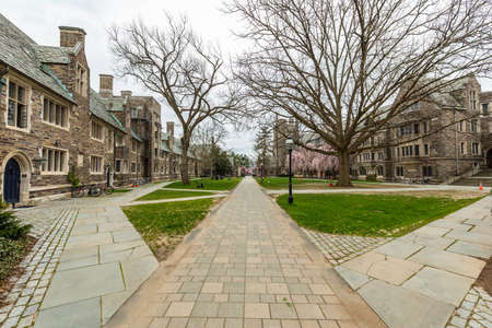 Princeton, NJ / USA - 4/3/2020: Empty campus of Princeton University during Coronavirus quarantine at day