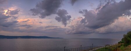 Cloudy sea view of Alexandroupolis of Evros region Greece, stormy weather.