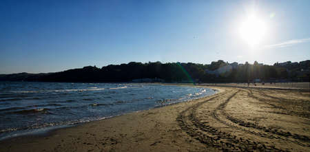 GDYNIA, POLAND: SEPTEMBER 29, 2017 - The main beach located in central city-port of Gdynia late afternoon on September 29, Poland