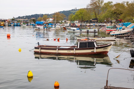 Nessebar, Bulgaria - 6 Sep 2018: Fishing boats at the Harbor Port of Nessebar, one of the major seaside resorts on the Bulgarian Black Sea Coast. Nesebar or Nesebr is a UNESCO World Heritage Site.