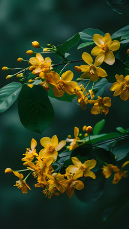 A stunning display of vibrant yellow flowers nestled among rich green leaves, capturing the essence of nature's beauty. Perfect for themes of tranquility and growth.