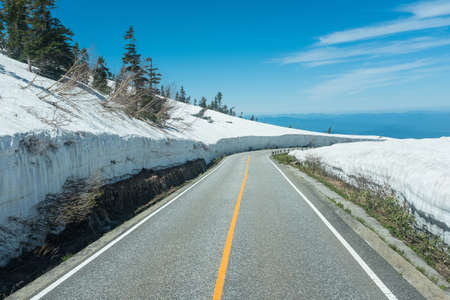 Tateyama Kurobe Alpine Route and Beautiful landscape the snow mountains view on Tateyama Japanese Alps in Japan,Toyama.