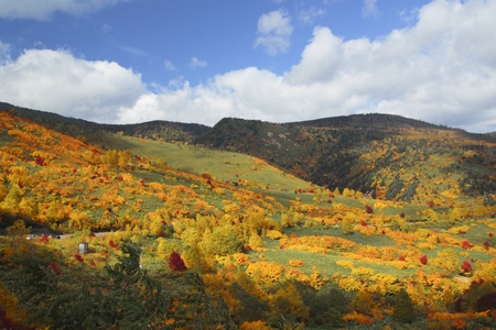 Scenery of the mountains with autumn leaves seen from Mt. Nikko Shirane