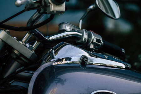 Limassol Cyprus May 21, 2020 Closeup of a motorcycle parked in the streets of Limassol in Cyprus island