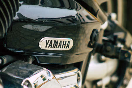 Limassol Cyprus May 14, 2020 Closeup of a motorcycle parked in the streets of Limassol in Cyprus island