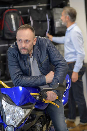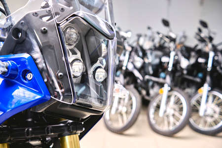 Motorcycles in the showroom Yamaha shop. Store motorcycle, professional tools, selective focus.