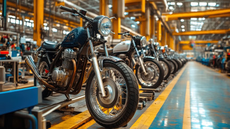 Motorcycle assembly plant. Motorcycle manufacturer. Motorcycle factory. Generative AI