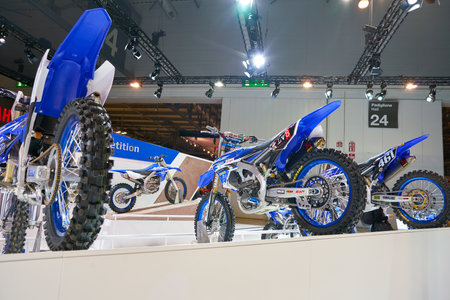 MILAN, ITALY - NOVEMBER 11, 2017: Yamaha motorcycles on display at EICMA 2017 - 75th International Motorcycle Exhibition