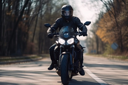 A motorcyclist on a sports bike rides the streets and highways, dangerous motor vehicle, generative AI.