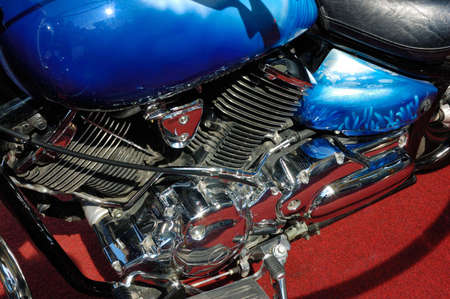 Closeup of a big shiny motorcycle engine