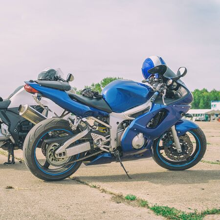 Freedom. Motor bike under sky ready to go