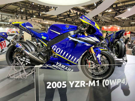 Milan, Italy - 2021 11 27: Eicma Milano Bike Expo Yamaha MotoGp Valentino Rossi 46 M1. High quality photo