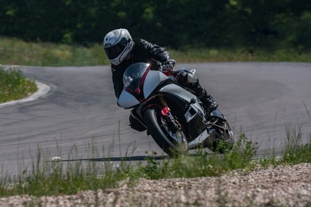 10-05-2020 Ropazi, Latvia Motorcyclist at sport bike rides by empty asphalt road. sport bike.