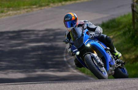 10-05-2021 Lithuania, Kaunas Moto rider, Motorcyclist rides at fast sport bike.