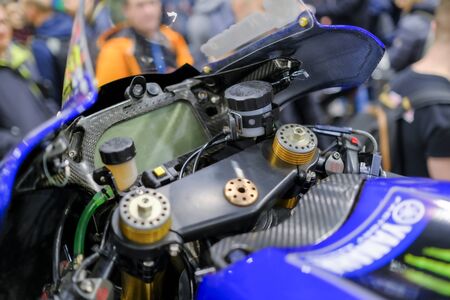 Thailand - Dec , 2018 : close up Yamaha R1M motorbike presented in motor expo Nonthaburi Thailand