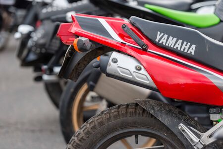 Motorcycles in the showroom Yamaha shop. Store motorcycle, professional tools, selective focus.