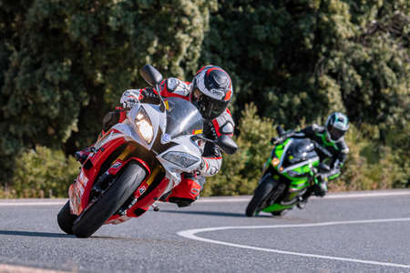 Motorcycle competition at a race track on a training day