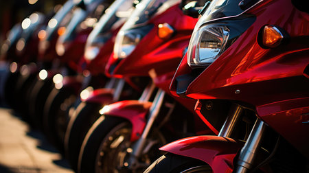 many motorcycles parked on the motorcycles parking lot , AI Generated