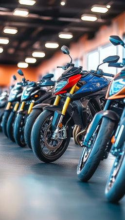 Diverse Collection of Motorcycles on Display in a Modern Showroom for Enthusiasts and Buyers