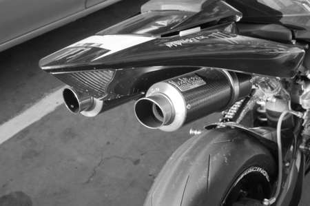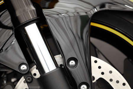 Motorbike with shining parts, close up. Motorcycle engine, toned