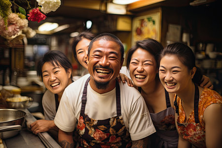 Chef preparing dishes at the counter while customers watch., generative AI