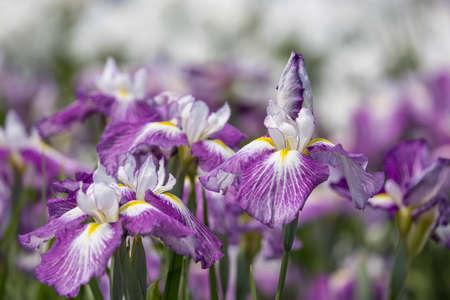 White False Lily valley on summer sunny day. Maianthemum canadense.