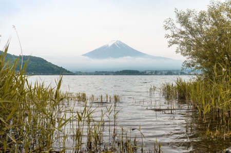 Mount Fuji from Kawaguchiko lake in Yamanashi, Japan. Lake view with Fuji mountain background.