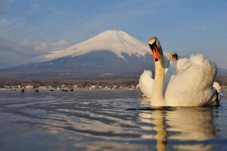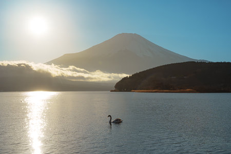 White Swan and Mt Fuji, Yamanaka lake, Yamanashi, Japan