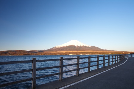 Japan's famous tourist attraction,'Yamanakako-lake' in late autumn. Yamanakako-lake is a scenic lake at the foot of Mt. Fuji in Yamanashi Prefecture, Japan.