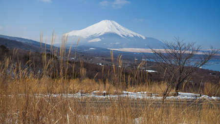 View of Mt. Fuji against the blue sky from the Panoramadai (Yamanakako Village) in early spring