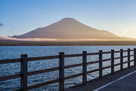 Mountain Fuji and cloud with beautiful sunset sky at lake Yamanakako in summer evening