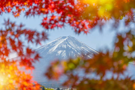 Mount Fuji and Maple Leaves in Autumn, Kawaguchiko Lake, Japan