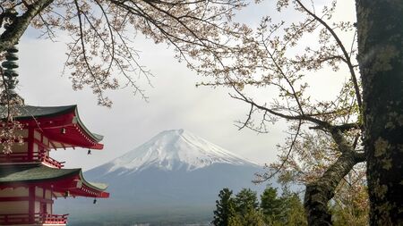 Famous Place of Japan with Mount Fuji and Chureito pagoda in daytime
