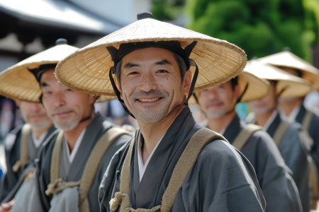 Tokyo - May 19, 2019: People celebrating the Sanja Matsuri festival in traditional clothes in Asakusa, Tokyo, Japan