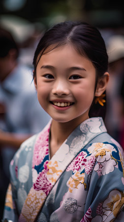 Portrait of a girl in traditional clothes at the annual geisha festival in Kamchatka.
