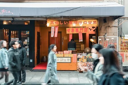 Tokyo, Japan, October 31, 2023: Locals and tourists shopping at a busy market street