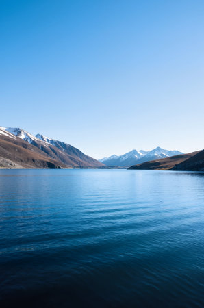 Natural landscape of New Zealand alps and lake with clear blue sky