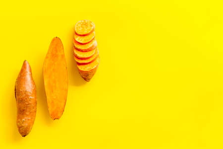 Concept of vegetables, sweet potato, space for text