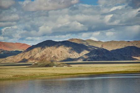 Mongolia. mountain lake Tolbo Tuur, Bright sunny day