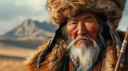Senior mongolian horseman in traditional clothing