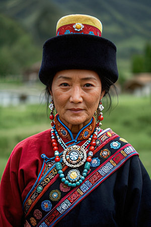 Ladakh, portrait of a woman with traditional dresses