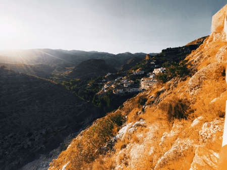 Overview of Bayarcal from Puerto de la Ragua mountain pass over the Sierra Nevada mountains in Andalucia, Spain