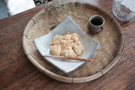Traditional japanese mochi with bean dessert ,Japanese confectionery Warabi-mochi