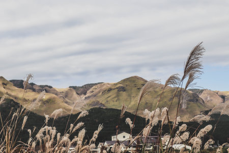 Wild Japanese Pampas Grass Field in Aso, Kumamoto, Japan.
