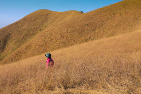 Traveller enjoy hiking to the peak of highest mountain in Taipei, Taiwan. Qixing Mountain at Yangmingshan National Park