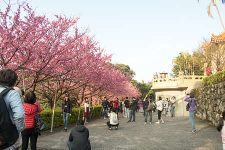 Tamsui Palace, Tamsui Town, New Taipei City-Feb 2,2019: Cherry Blossom of Tianyuan Palace in sunny day.