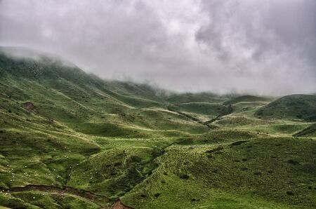 Natural Landscape. Clouds cover the peaks of the mountains